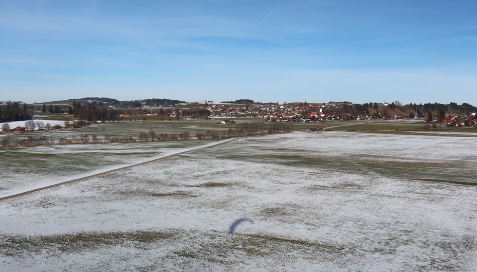 kommt der Wind exakt von vorne, sanft. Der Hang trägt gut, ich kann mich eine Weile halten.