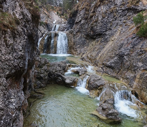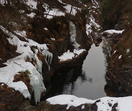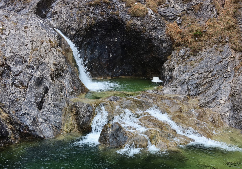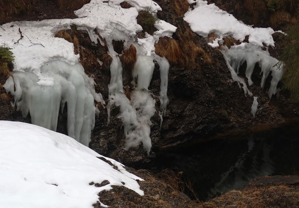 Der Weg an den Stuibenfällen ist sehr eisig. Unangenehm sind damit