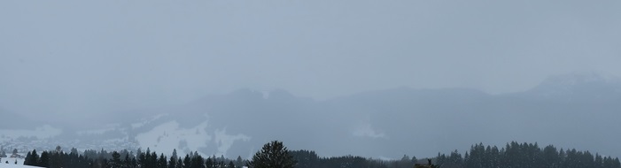 Früh schneit es. Zu Bahnbeginn steckt der Buchenberg im Nebel - aber bald sehe ich in der WebCam