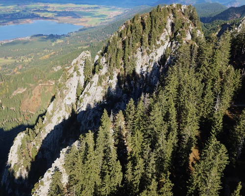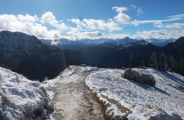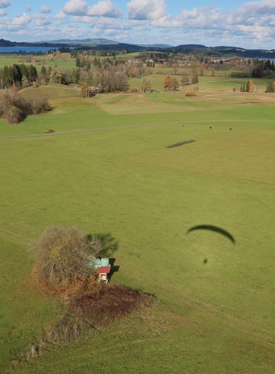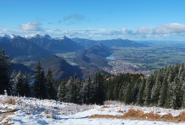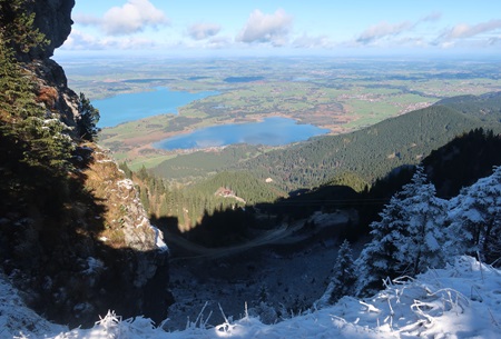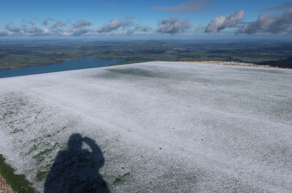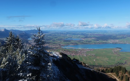 Morgens hängen noch die Wolken, aber es wird schnell blau. Die Tegelberg-Windrichtung sieht schön nordwestlich