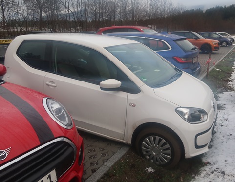 schwach. Da fahre ich zum Krankenhaus. Einen Parkplatz finde ich nur im hinteren Teil, der