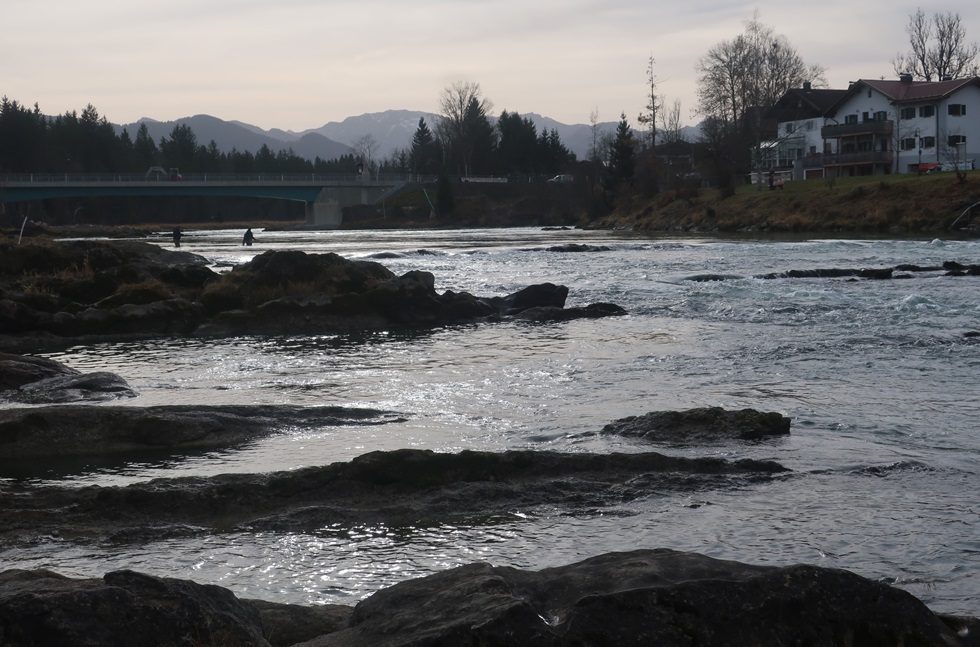 weg auf der oberbayrischen Seite. Der Lech führt relativ wenig Wasser.