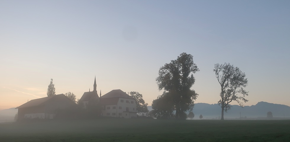 Reichlich Nebel ist angesagt. Aber kurz vor Tagesanbruch sehe ich unsere Berge!