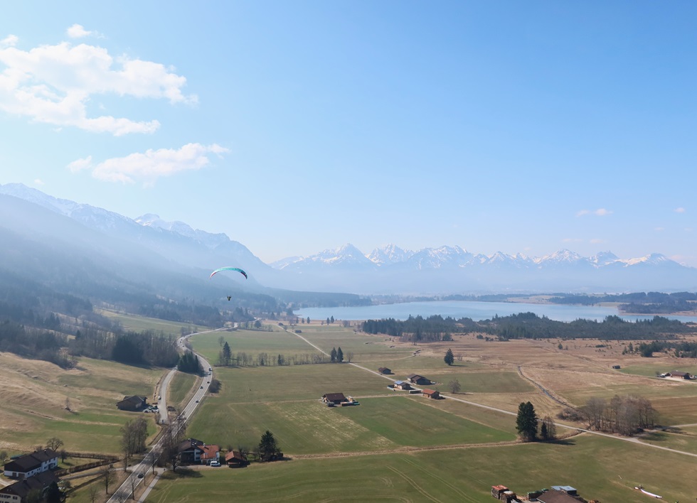 Uns zieht es dann zum Tegelberg. Der Wind kommt wie gestern