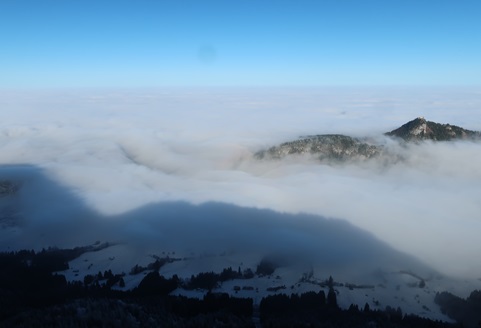 Unser Alpenrand hängt mal wieder im Nebel. Der Tegelberg meldet kräftigen Südwind.