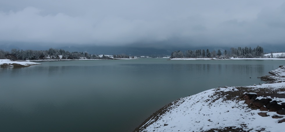 Der Schneefall hört auf. Ich fahre zum Roßhaup-
