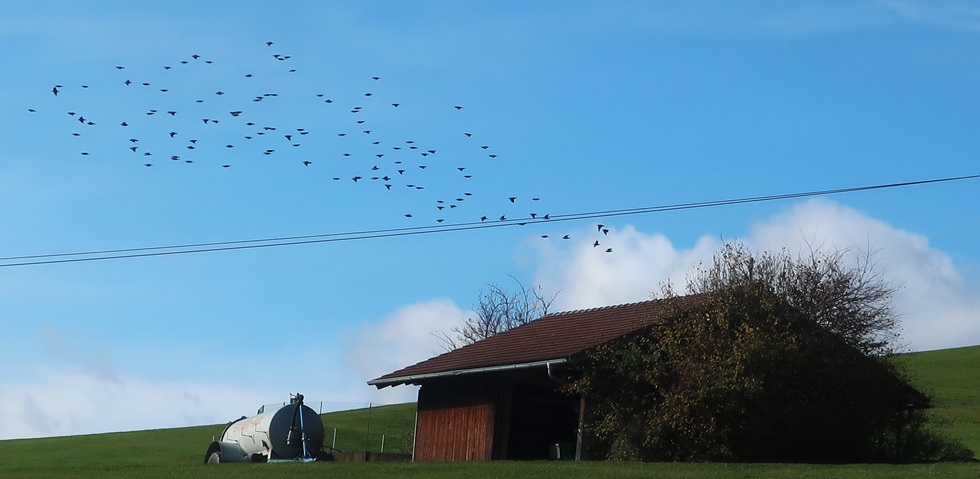 Der Vogelschwarm bleibt immer zusammen, hin und her, solange ich
