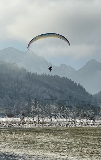 Tegelberg näher komme, sehe ich welche fliegen. Oben ist es wieder warm. Ich bastele