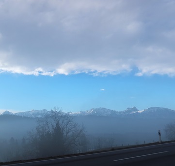 Ab Sulzberg ist der Nebel vorbei. Ich war noch nie so früh in