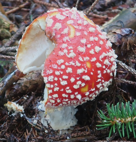 Erledigungen in Füssen will ich oberhalb von Hopfen nach Pilzen schauen. Schon am Waldrand begrüßt mich der Fliegenpilz.