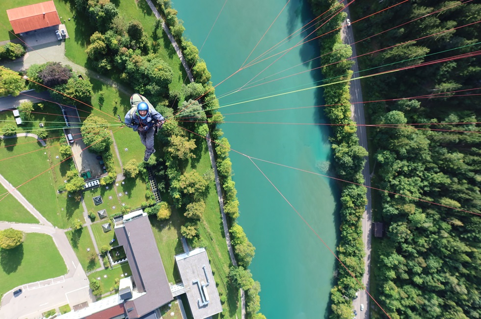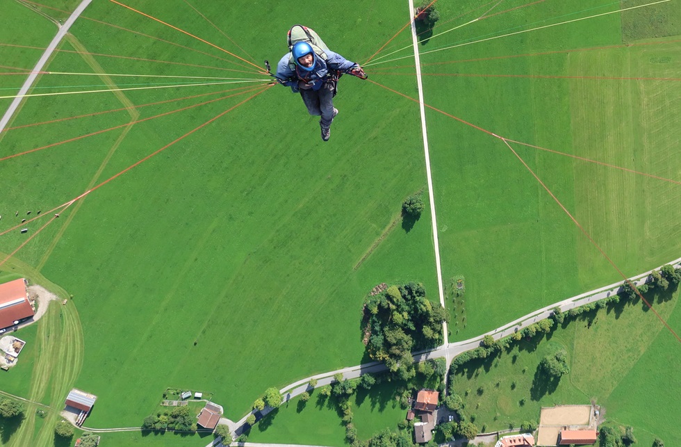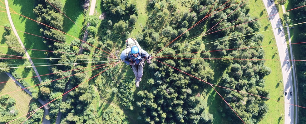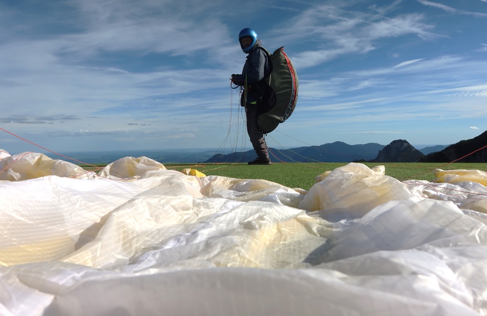 Ich bin zur ersten Gondel am Tegelberg. Oben ist schwacher Rückenwind mit Null-