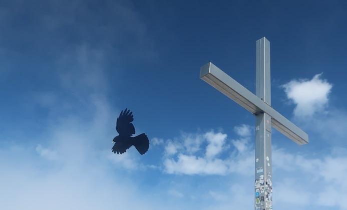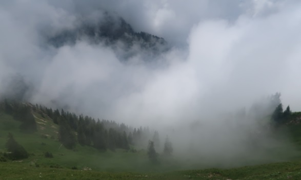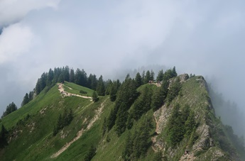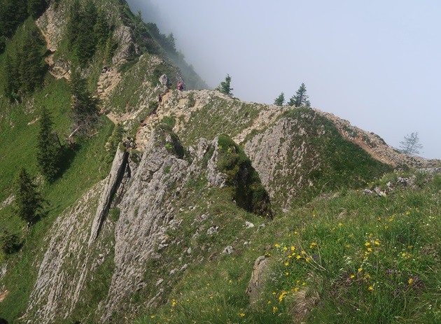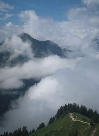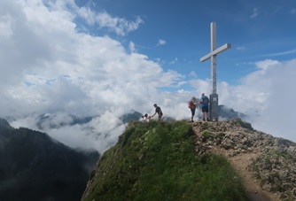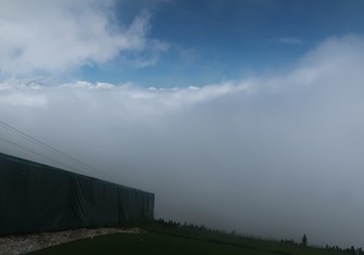 steckt. Von der Bergstation steige ich im Nebel zum Branderschrofen,
