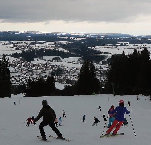 Ich wähle Nesselwang, weil das Skigebiet schön sanft und das Bad in meiner Liftkarte drin ist. Der
