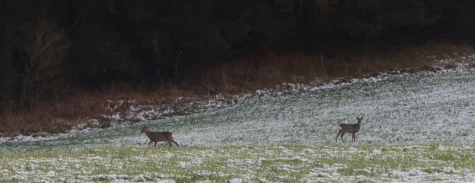 Über Nacht hat es geschneit, die Dächer sind weiß, die Straßen