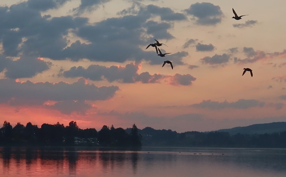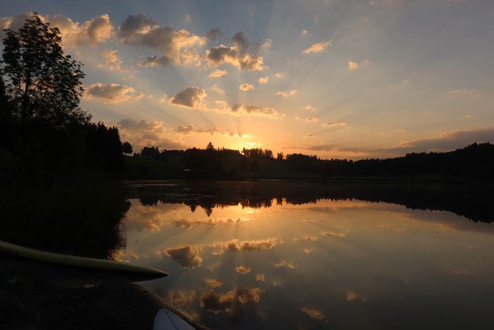 ich den Kaltenbrunner See. Das Wasser hat 21°, die Luft 14°.