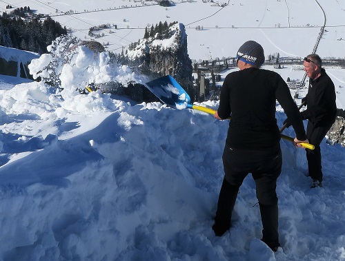 um schließlich die hohe Schneewehe am Nordweststart wegzufräsen.