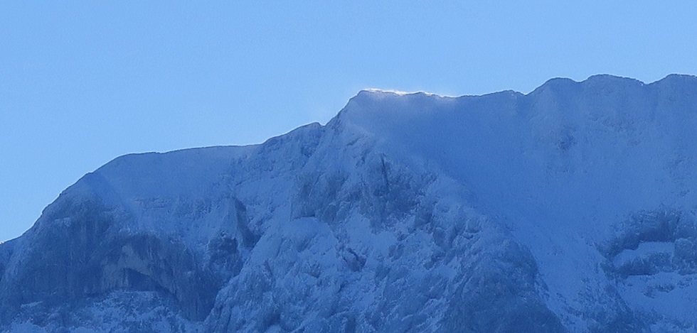 In der Höhe gibt es offenbar starken Südostwind, erkennbar an den Schnee-