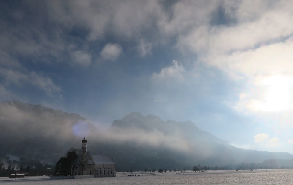 Im Alpenvorland ist die tiefe Hochnebeldecke dicht, auch der Buchen-