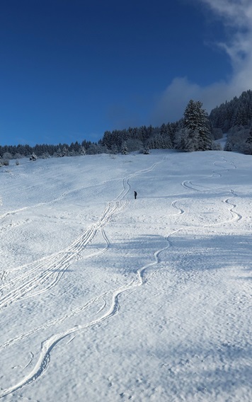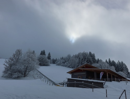 den Almstart vor und schiebe ein bisschen Schnee an der Kante.