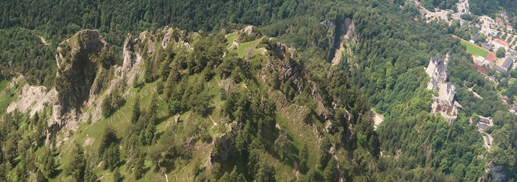 Die Warteschlange an der Tegelbergbahn ist heute kürzer. Oben