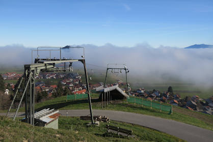 Ich lande ganz unten bei Oberried. Ein Mann, der meinen Anflug beobachtet hat, stellt