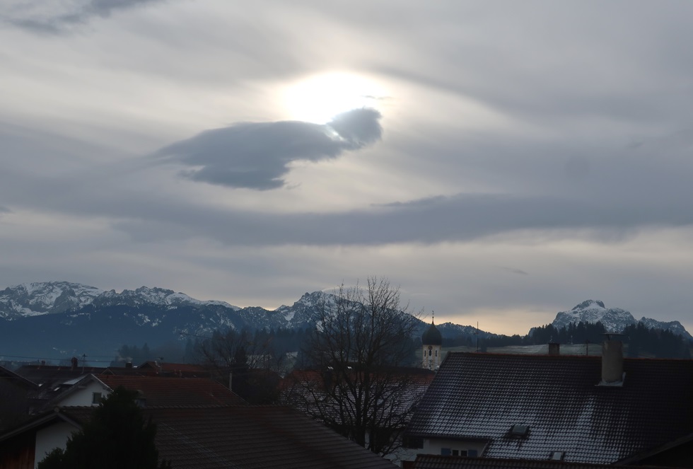 Die Windwerte und die Wolkenformen sagen klar Föhn. Aber Sonne und