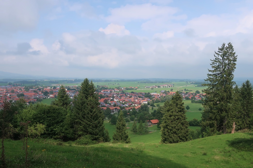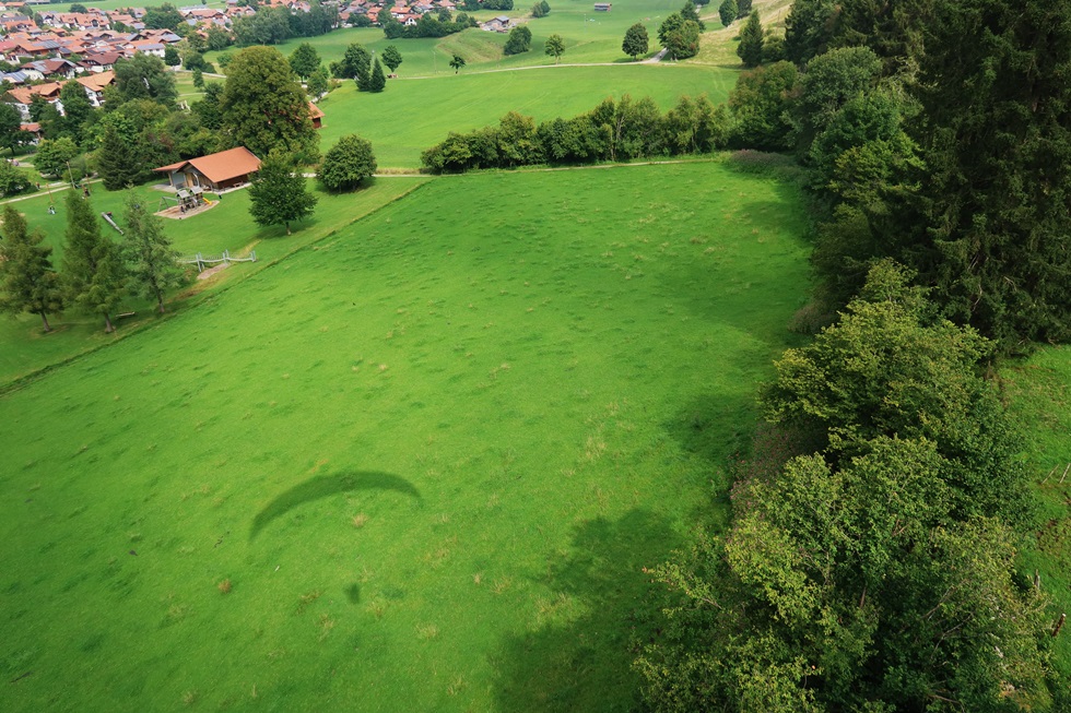 Kurz vor Roßhsaupten sehe ich Gleitschirme am Übungshang der
