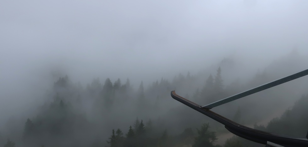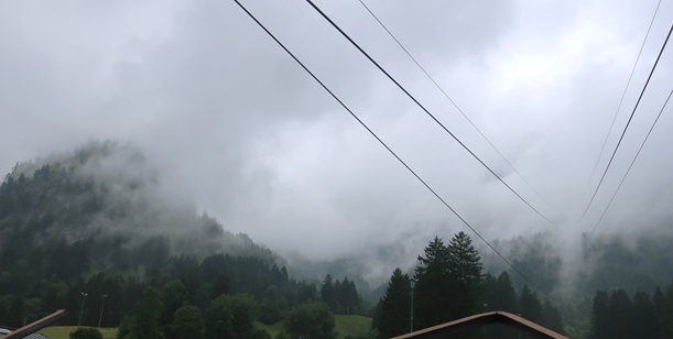 Der Vormittag ist verregnet, die Berge tief verhan-