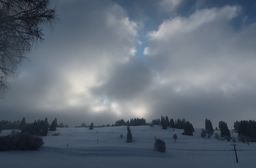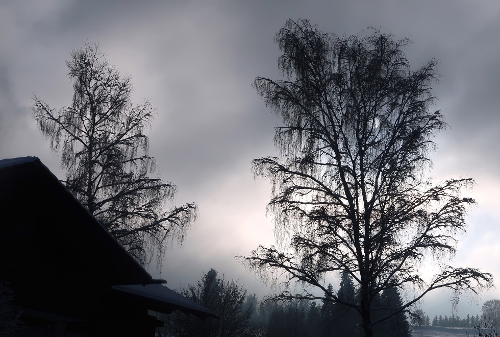 Es schneit nicht mehr. Ich gehe durchs Dorf und stoße