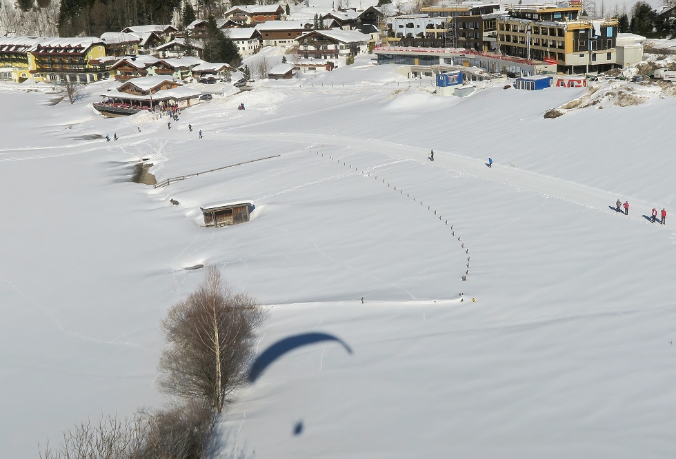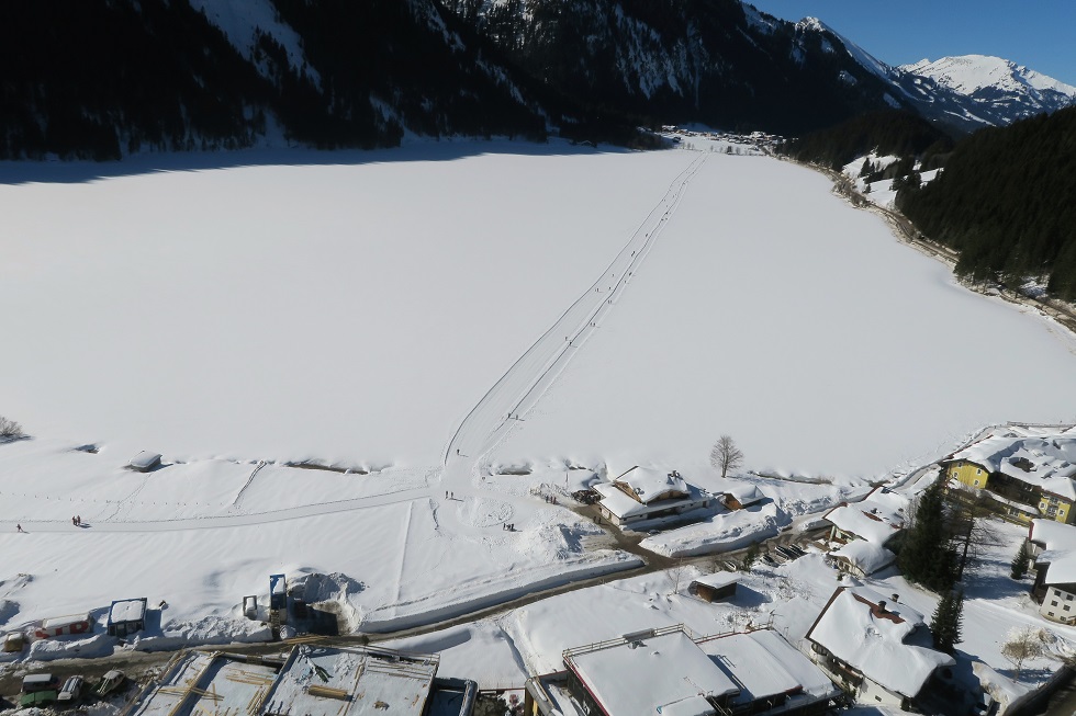 Ich lande auf der Loipe im Haldensee. Den Bus nach Tannheim erwische ich genau.