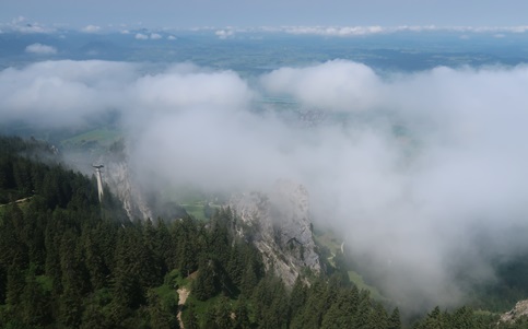 ich zum Tegelberg, der hat tiefe Wölkchen. Die Warteschlange