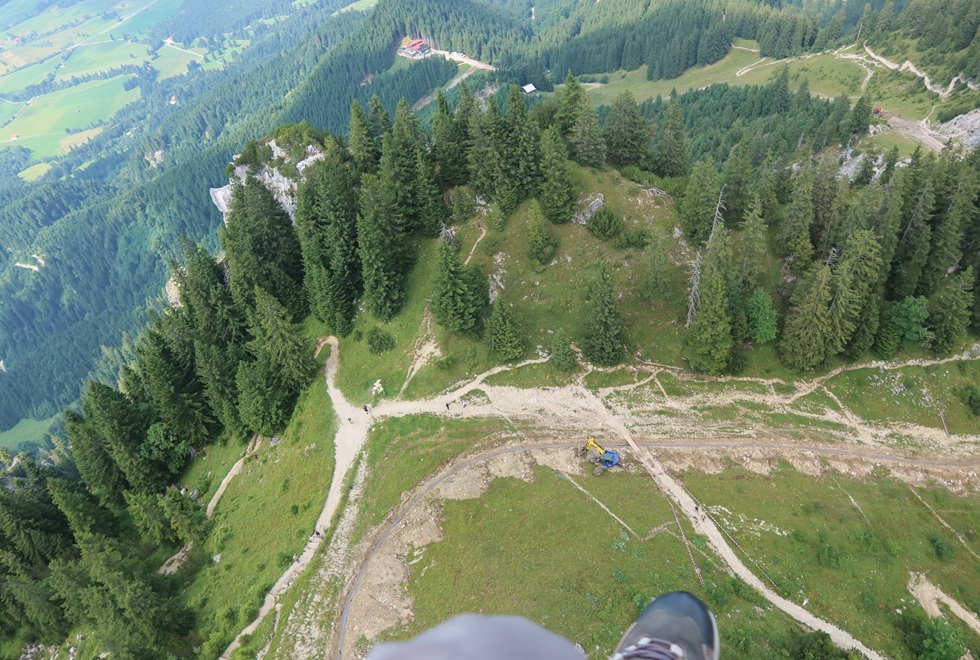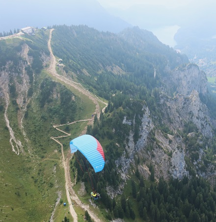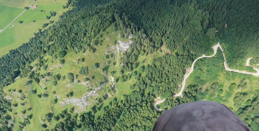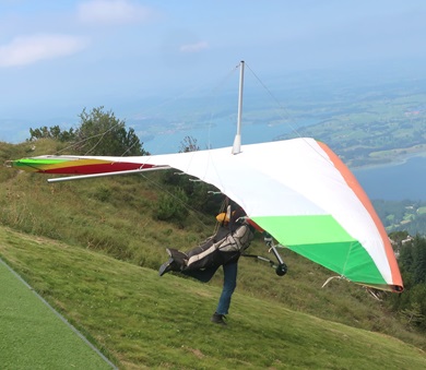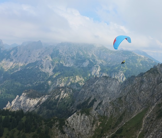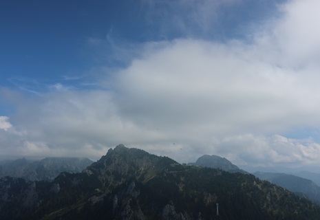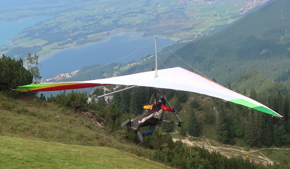 finde ihn schließlich auf der Terrasse vom Tegelberghaus. Natürlich fotografiere ich seinen Start.