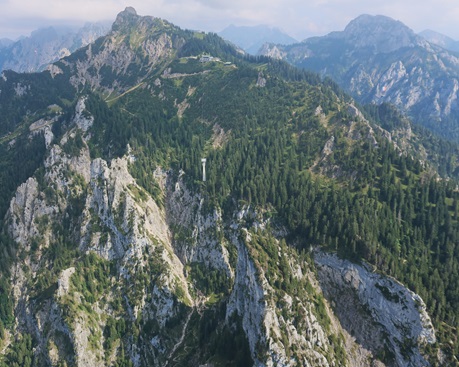 Als ich wieder zum Tegelberg fahre - ja, es ist schon das zweite Mal in diesem Jahr! - hängt