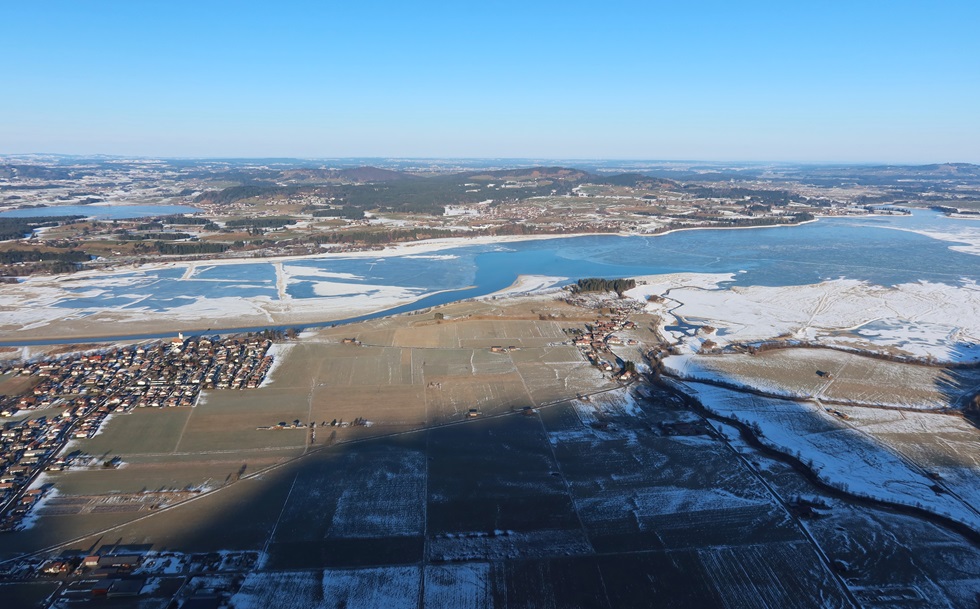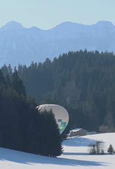 nahe schwache Ostwind treibt den Ballon ins nächste Tal.