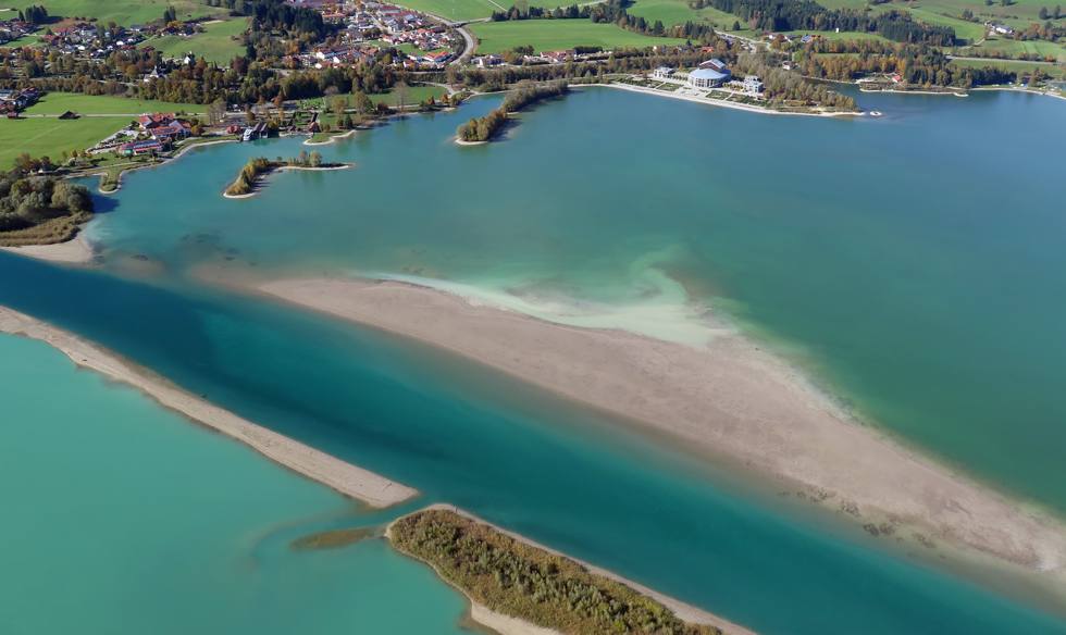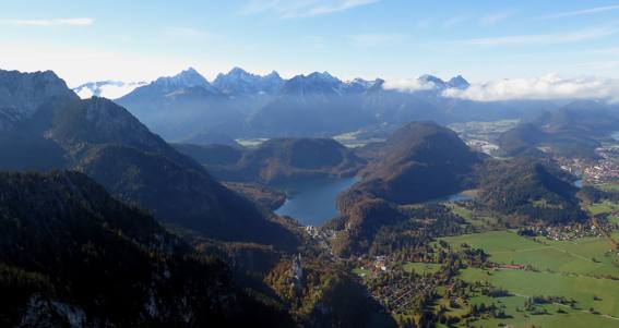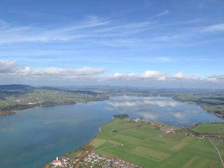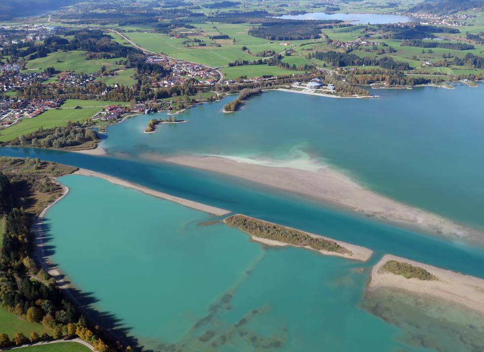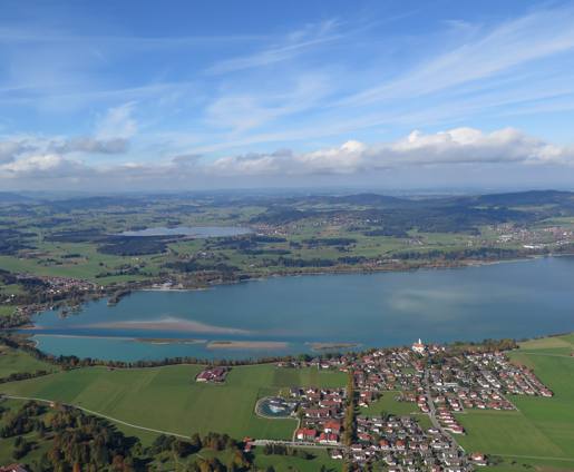 Der Forggensee ist nicht mehr ganz voll. Die Füssen liegt schon im Winterdock. Meine Peilung