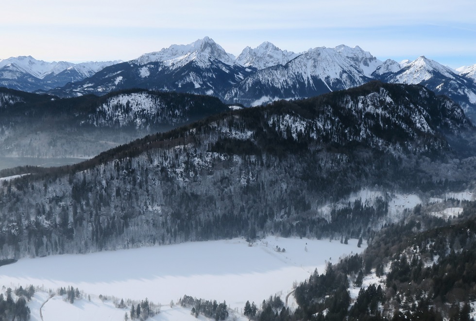 Am Tegelberg kommt schwacher westlicher Wind.