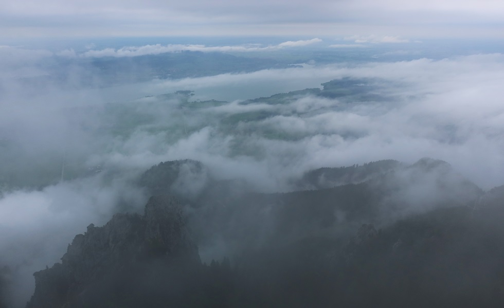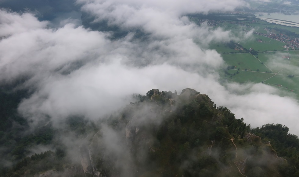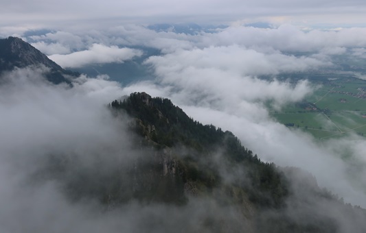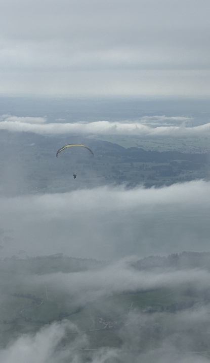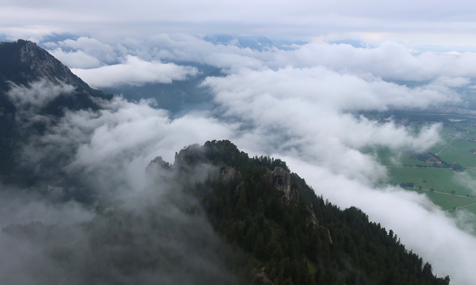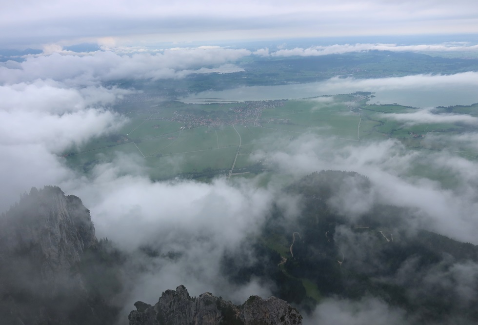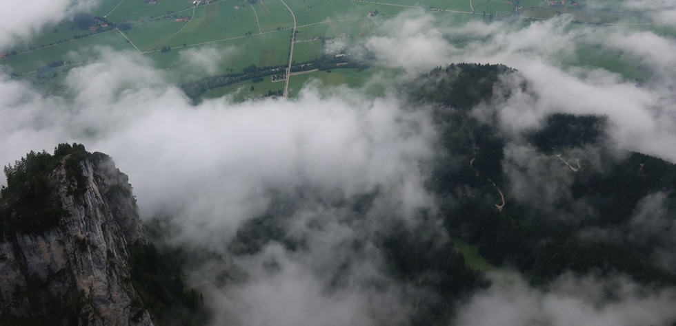 Als ich zur ersten Gondel am Tegelberg fahre,