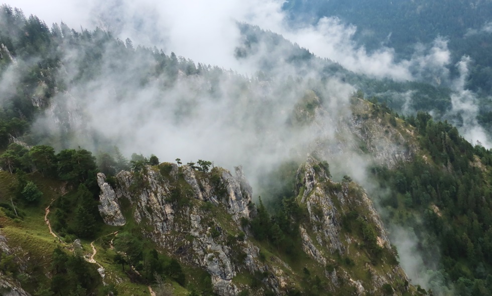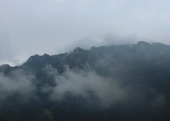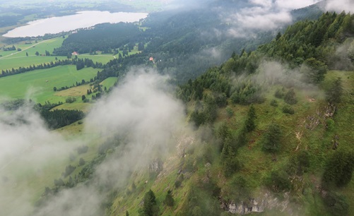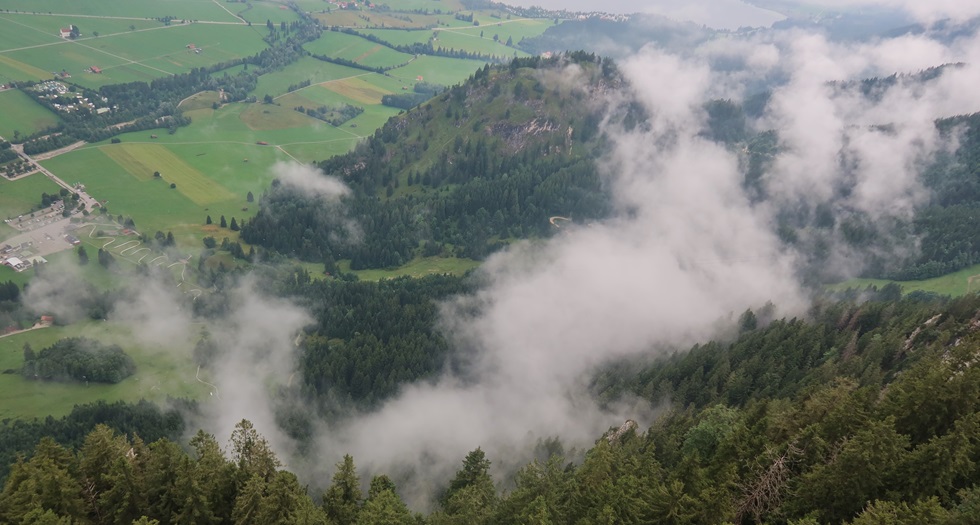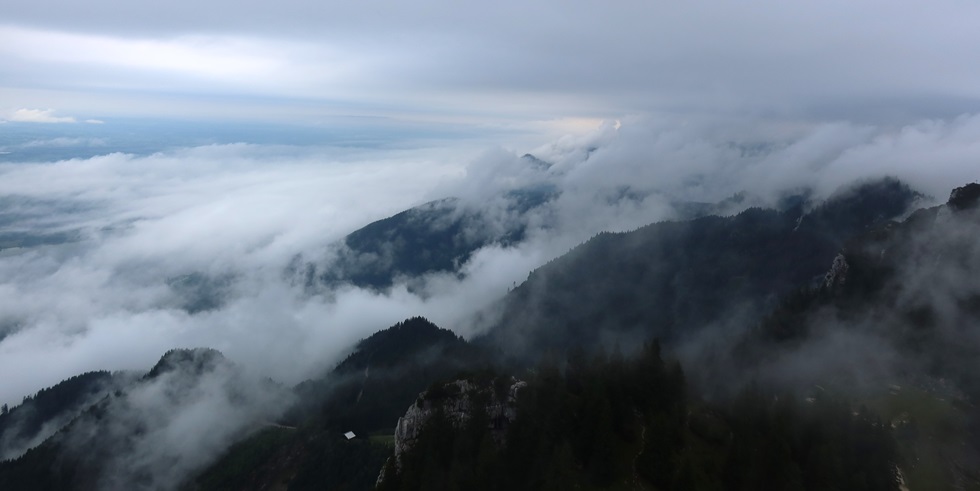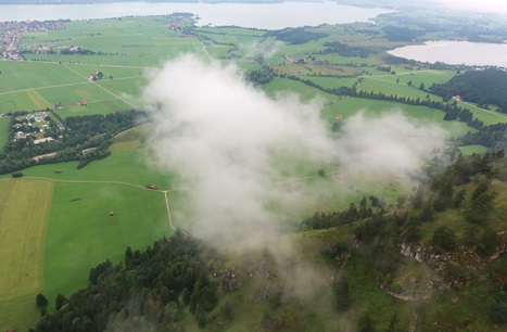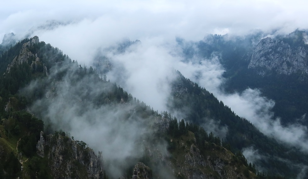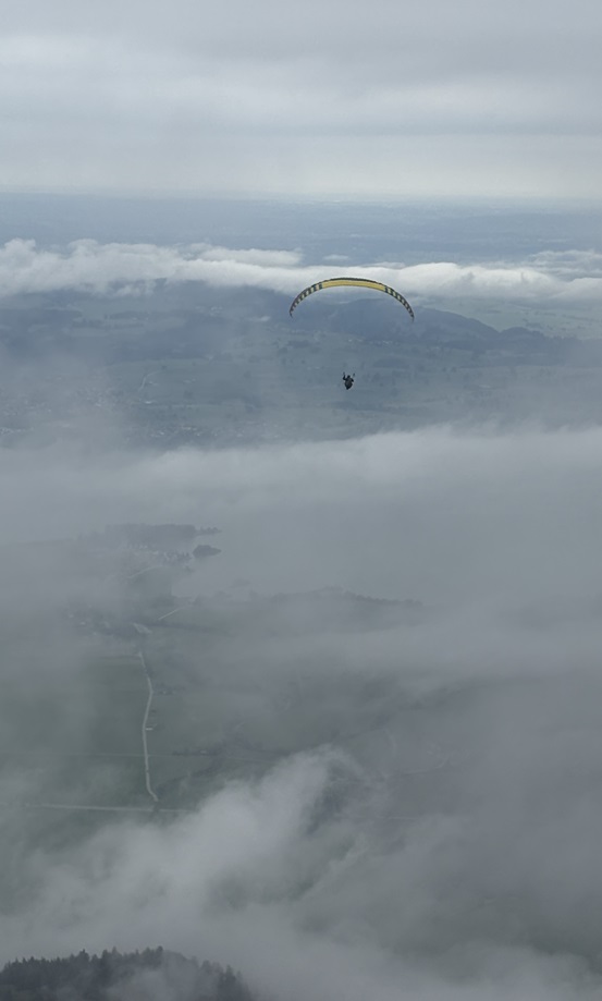Als ich zur ersten Gondel am Tegelberg fahre,