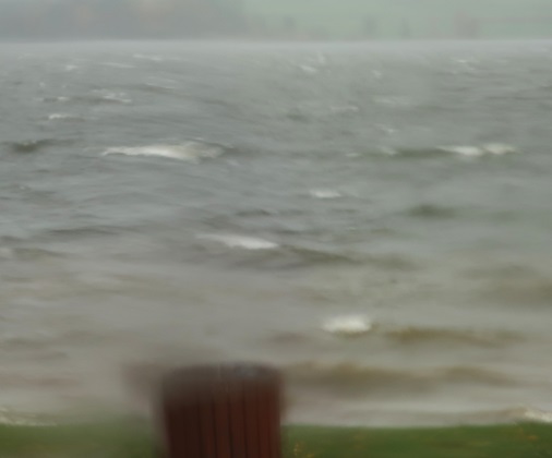 West. Ich fahre nochmal am Hopfensee vorbei. Es regnet stark.