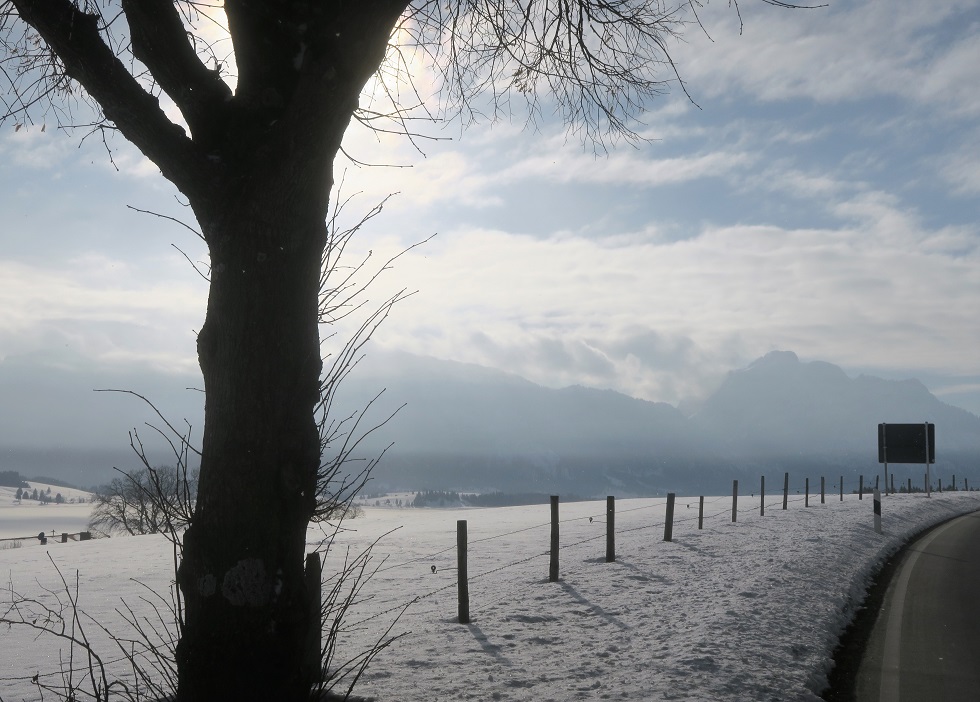 weg trüb, auf der Rückfahrt hat es geschneit. Sonne