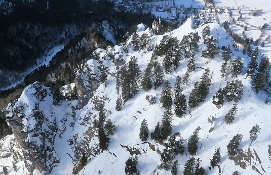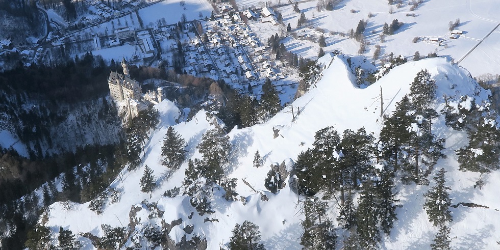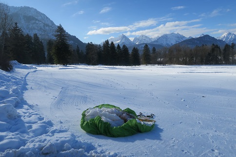Ich erkenne unten einen gepflegten Winterlandeplatz, unter-