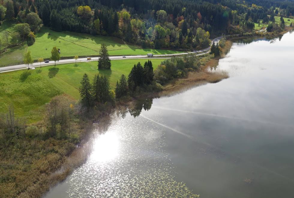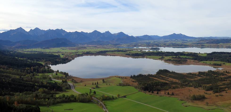 halbeins komme ich bei nahezu Null von vorne sicher raus. Ich fliege Richtung Bannwaldsee.