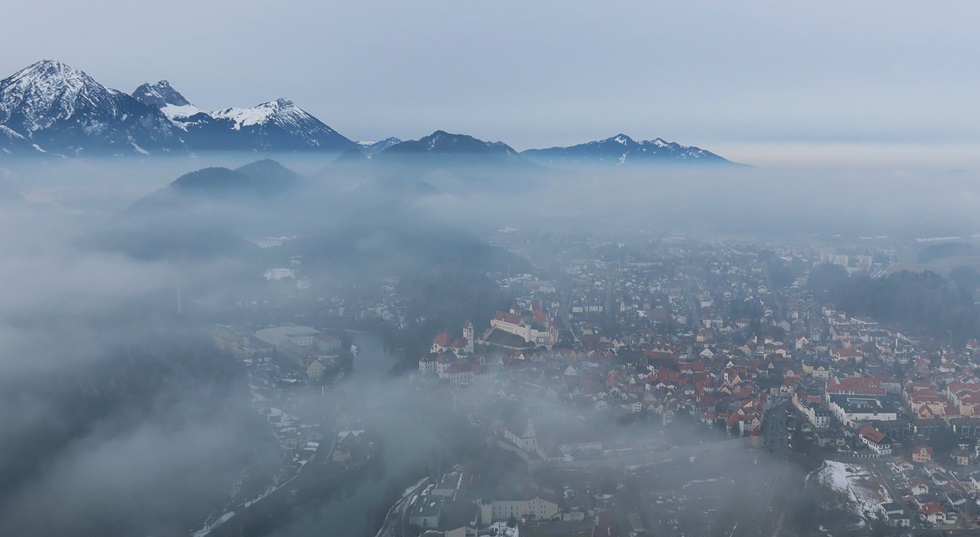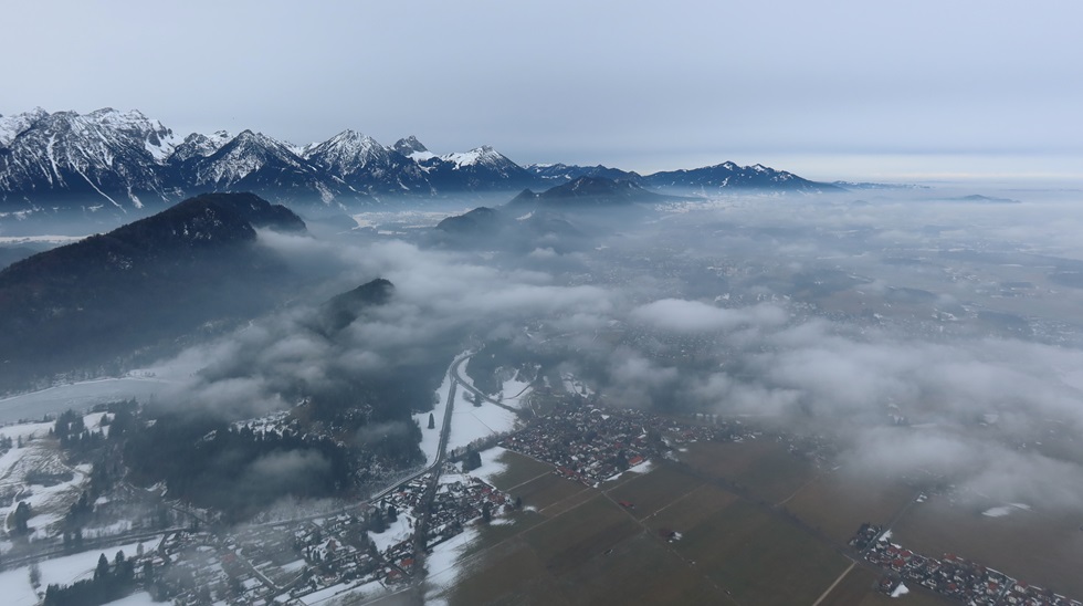 steckt das Dorf im Nebel. Aber die Tegelberg-WebCam zeigt genügende Sicht.