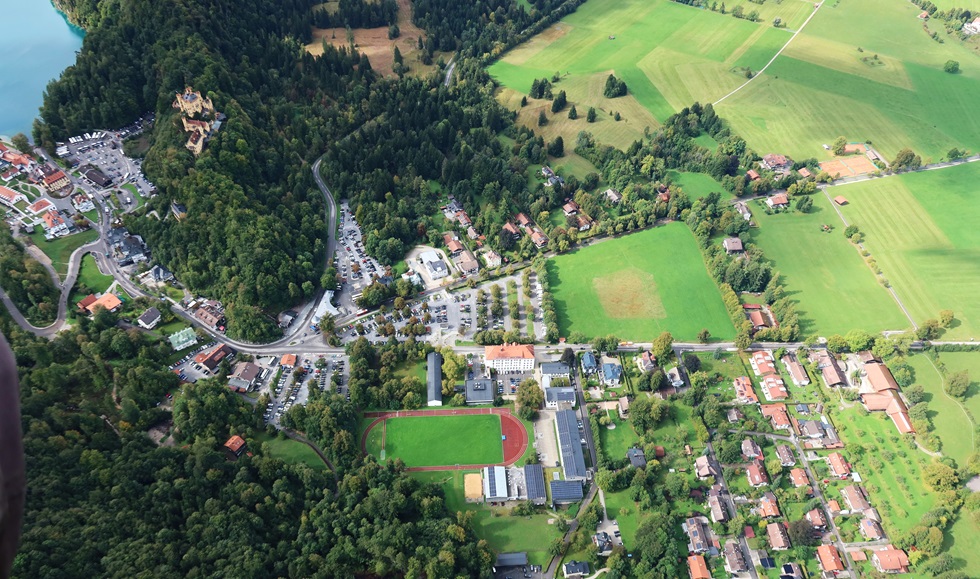 Unter mir das Hohenschwangauer Gymnasium, wo ich