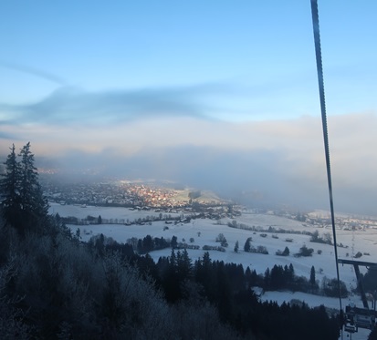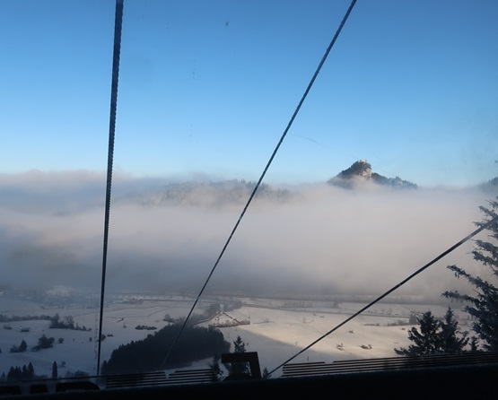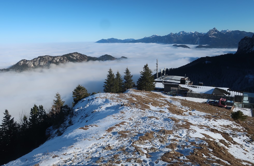Unser Alpenrand hängt mal wieder im Nebel. Der Tegelberg meldet kräftigen Südwind.