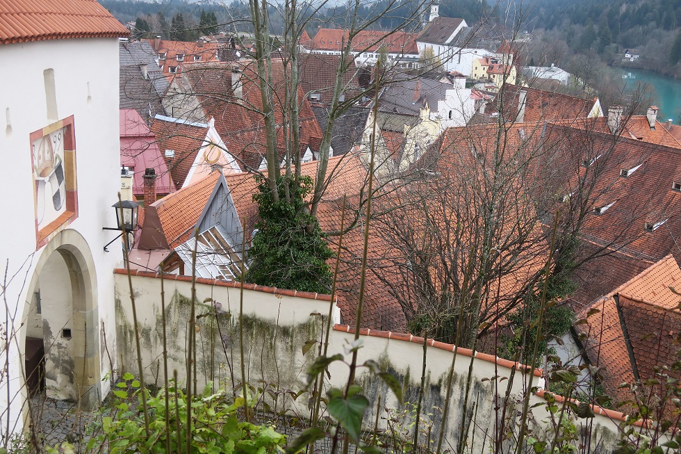 den Steilhang unter der Mauer des Hohen Schlosses hoch.