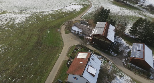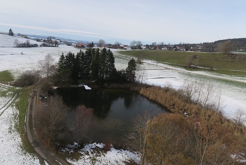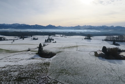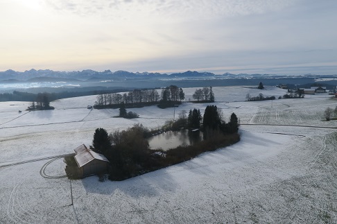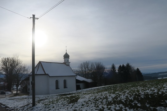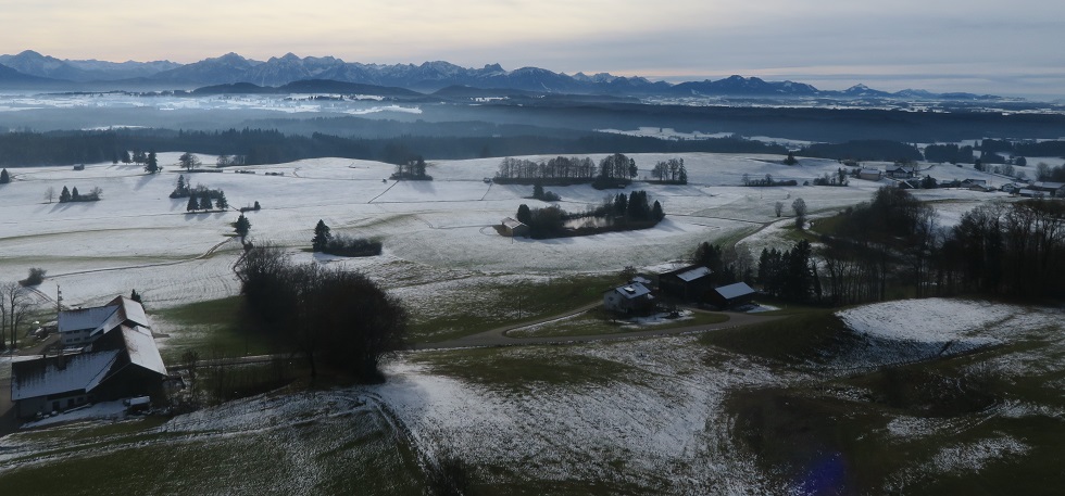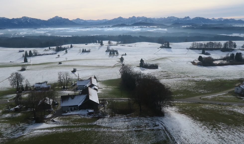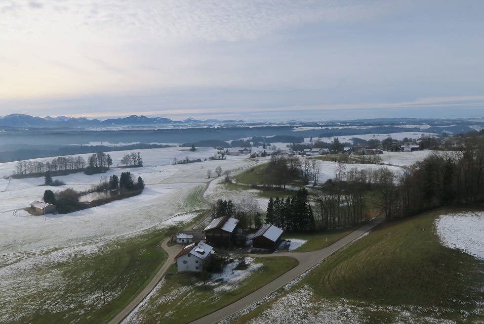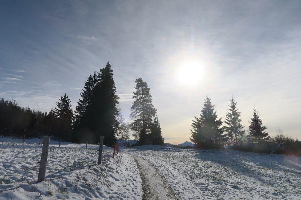 Skihütte zu fliegen, um die Ecke durch die Schneise nach Salchenried zu kommen.