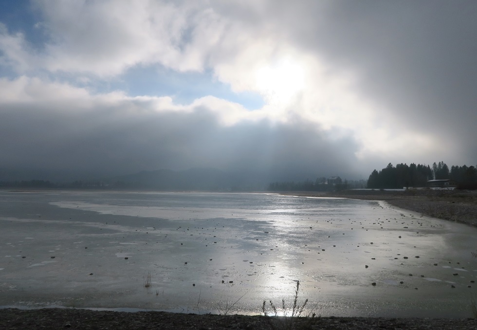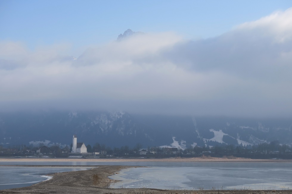Morgens war der Tegelberg zu sehen. Ich fahre unterm Hochnebel