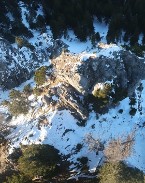 Ich mache mich an der Alm fertig. Hab einen Hauch von vorne, der Hang ist steil