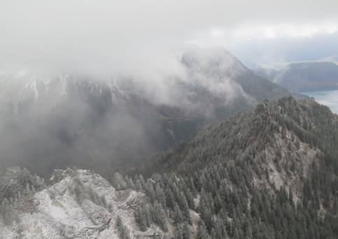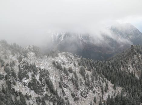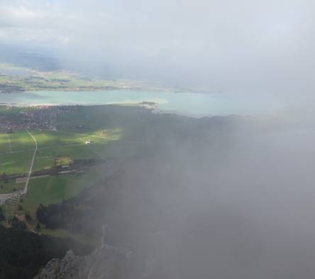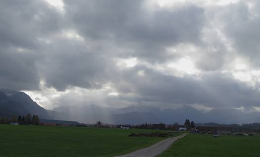 Morgens hat sich der Tegelberg verhangen gezeigt, später hoffnungsvoll aufgelockert.